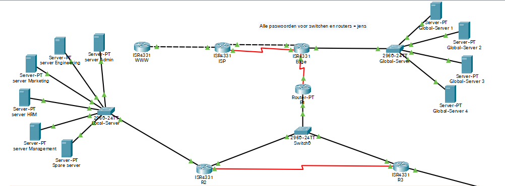 - ACL’S opzetten: zodat enkel de Admin’s via telnet aan de routers kunnen. En dat elke VLAN enkel naar zijn eigen server kan.